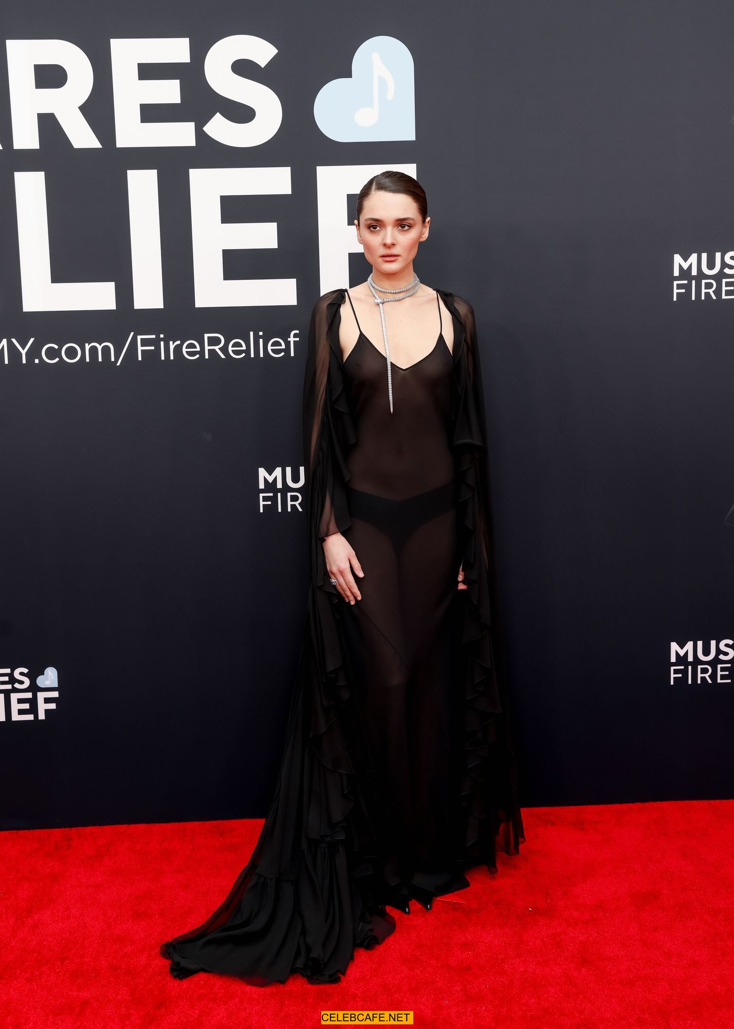 Charlotte Lawrence braless in see through dress at 67th Annual Grammy Awards in LA