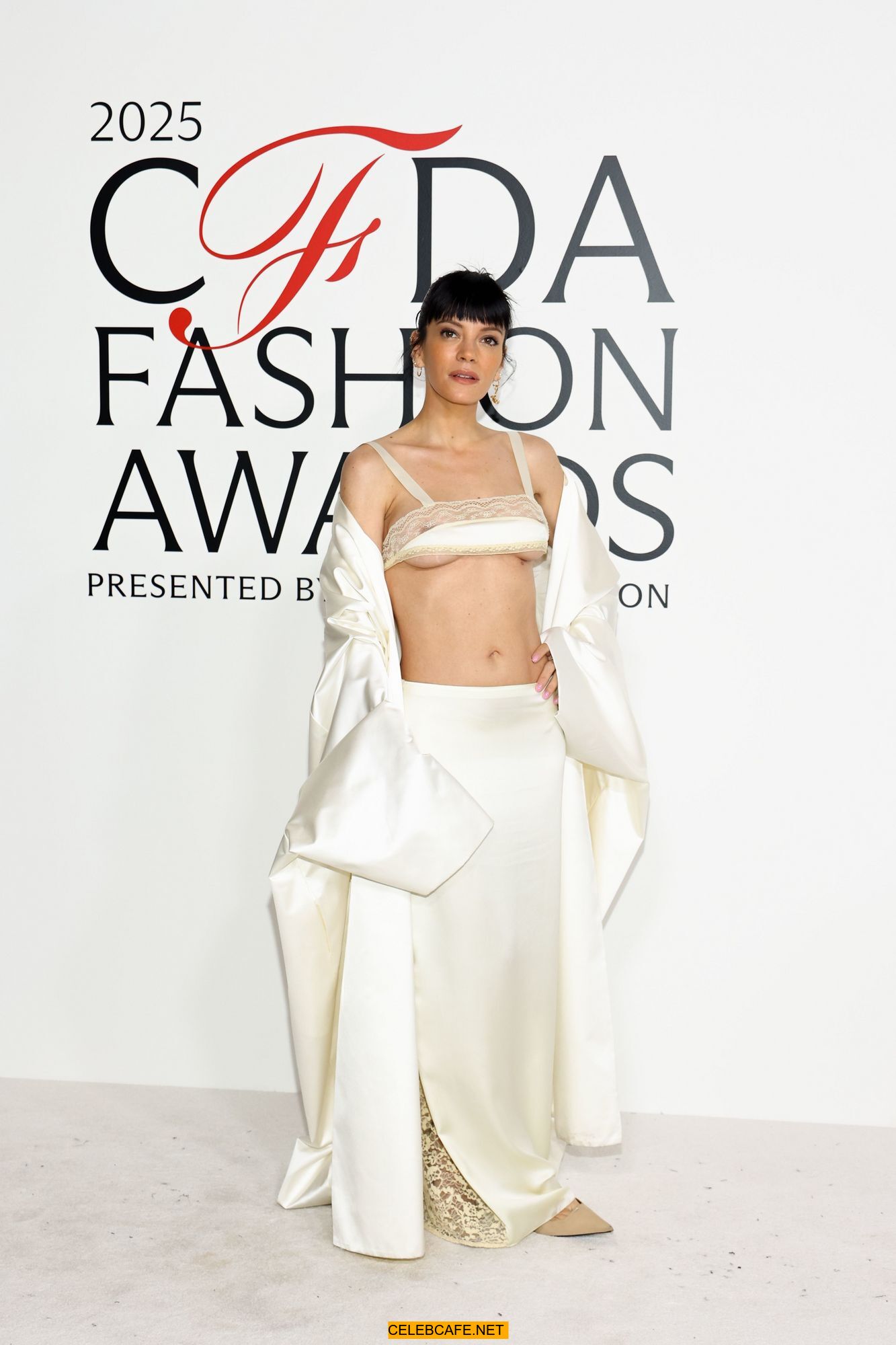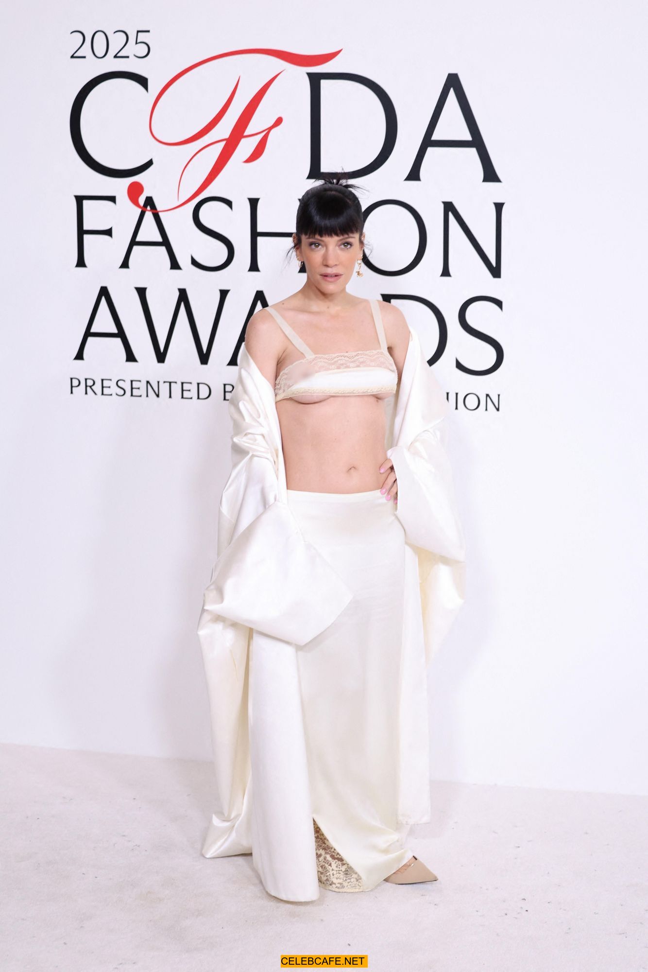 Lily Allen underboob and areola slip at 2025 CFDA Awards at The American Museum of Natural History