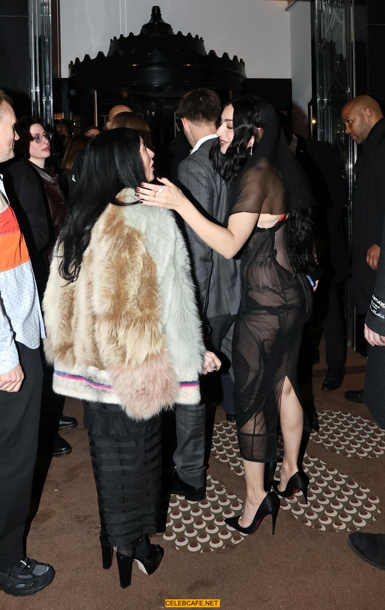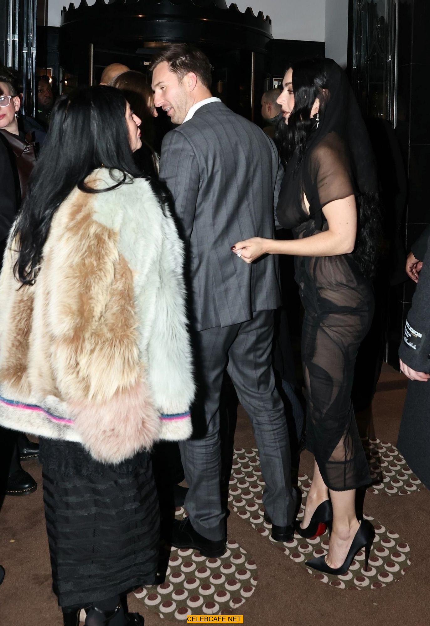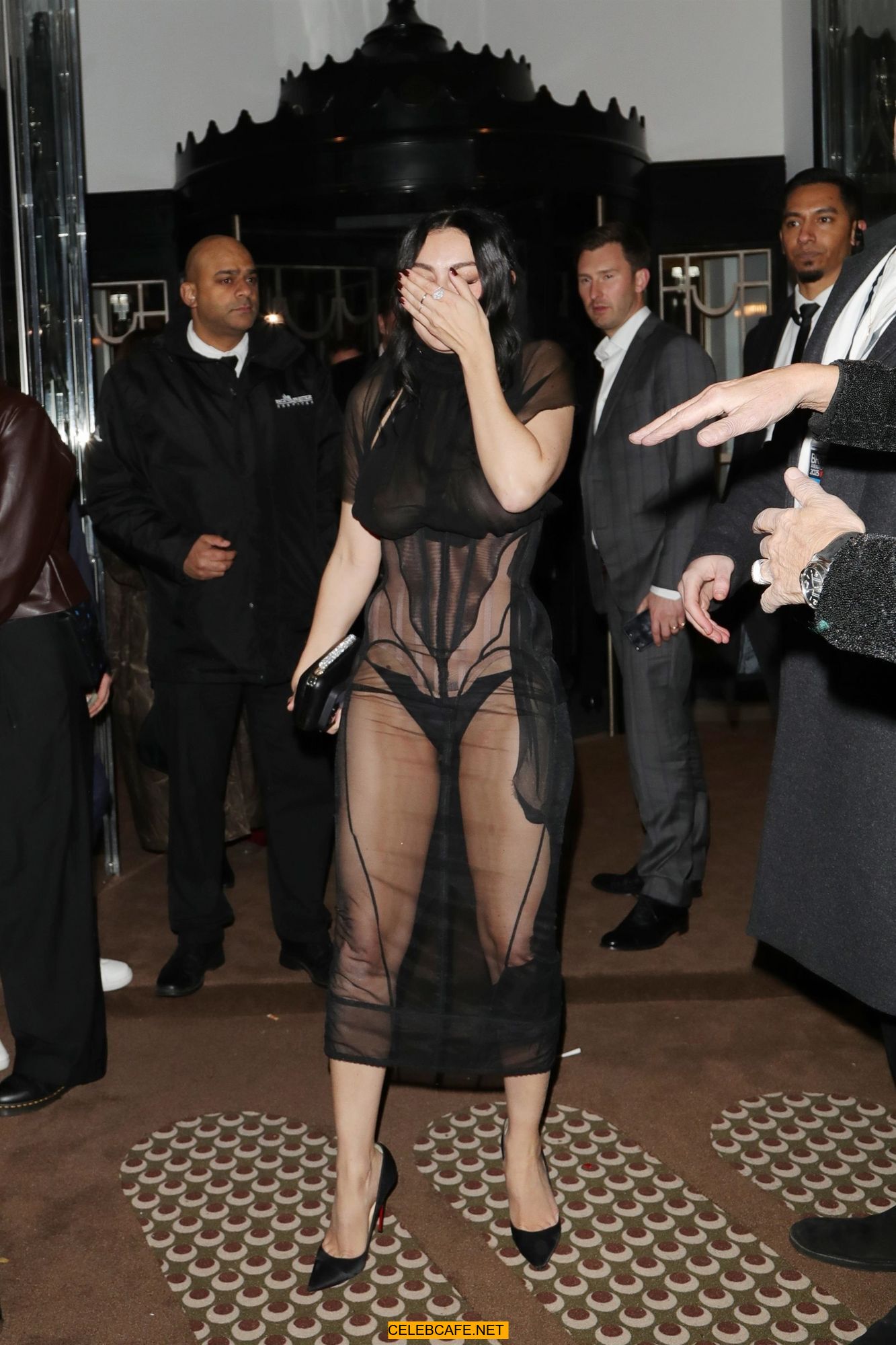 Charli XCX braless in sheer dress arrives at the Warner Music Brit Awards after party at Claridges Hotel in London